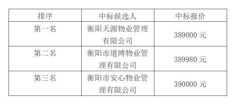 衡拖棚戶(hù)區改造(一期)安置小區前期物業(yè)管理公司中標候選人公示